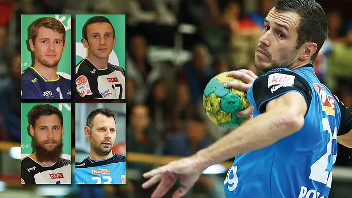 Pomorisac (re.) und Co. können nur auf ein Wunder hoffen. Meleschnig (l.o.) muss aus beruflichen Gründen passen, Mujanovic zog sich Muskelfasereinriss zu, Krobath (l.u.) fällt wegen Herzmuskelentzündung aus und Vodisek (hellblaues Dress) wurde am Hals not operiert.