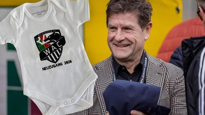 Und auch Sohn Jakob hat etwas zu erzählen: „Wir waren in Italien, meine Eltern haben überhaupt nichts geahnt“, schmunzelt Jakob, der gemeinsam mit seiner Partnerin Magdalena eine freudige Überraschung vorbereitet hatte: „Wir hatten einen Baby-Body gemacht, mit dem WAC-Logo und den Worten ,Neuzugang 2026‘. Die Freude, dass sie im Oktober erstmals Großeltern werden war riesengroß. Er ist sehr aufmerksam, fragt immer nach.“ Und Opa und Oma sind fix eingeplant: „Sie hatten sicher andere Pläne in der Pension, die haben wir ihnen durchkreuzt“, lacht Jakob und findet dann persönliche Worte: „Papa ist im Berufsleben sehr angespannt. Die Zeit mit seinem Enkel oder seiner Enkelin wird ihm guttun. Familie ist das Wichtigste für ihn.“