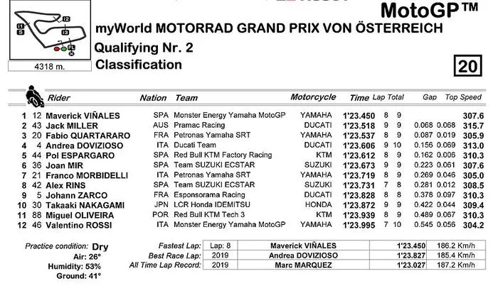 Das war doch eine Überraschung im Qualifying. Ausgerechnet auf der Power-Strecke Red-Bull-Ring, wo alle mit einem Duell zwischen Ducati und KTM gerechnet haben, schlug Yamaha wieder zu. Maverick Vinales holte sich die Pole-Positon vor Ducati-Privatfahrer Jack Miller.