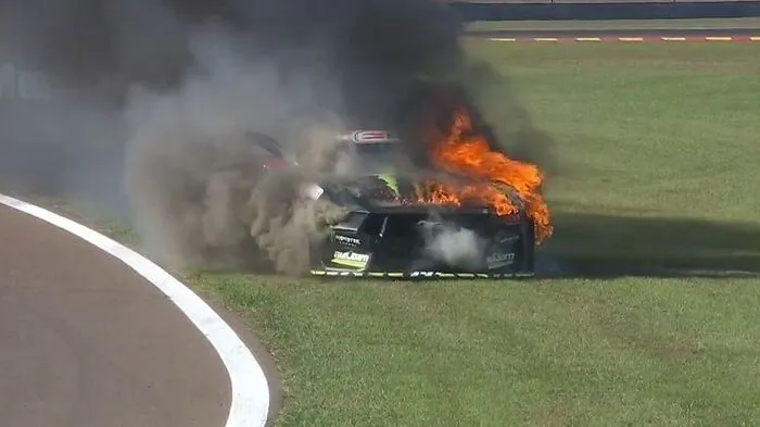 In der australischen Supercars-Rennserie kam es zu einem dramatischen Vorfall. Im ersten Rennen am Freitag stand der Wagen des Australiers Cam Waters im Vollbrand.