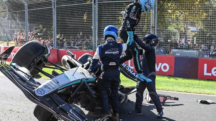 Es war eine wilde Szene in der letzten Runde des Rennens beim Großen Preis von Australien in Melbourne. Mercedes-Fahrer George Russell war noch auf der Jagd nach Fernando Alonso und seinem sechsten Platz.