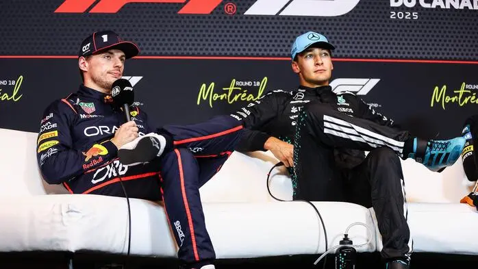 George Russell (rechts) und Max Verstappen beim Grand Prix von Kanada im vergangenen Jahr