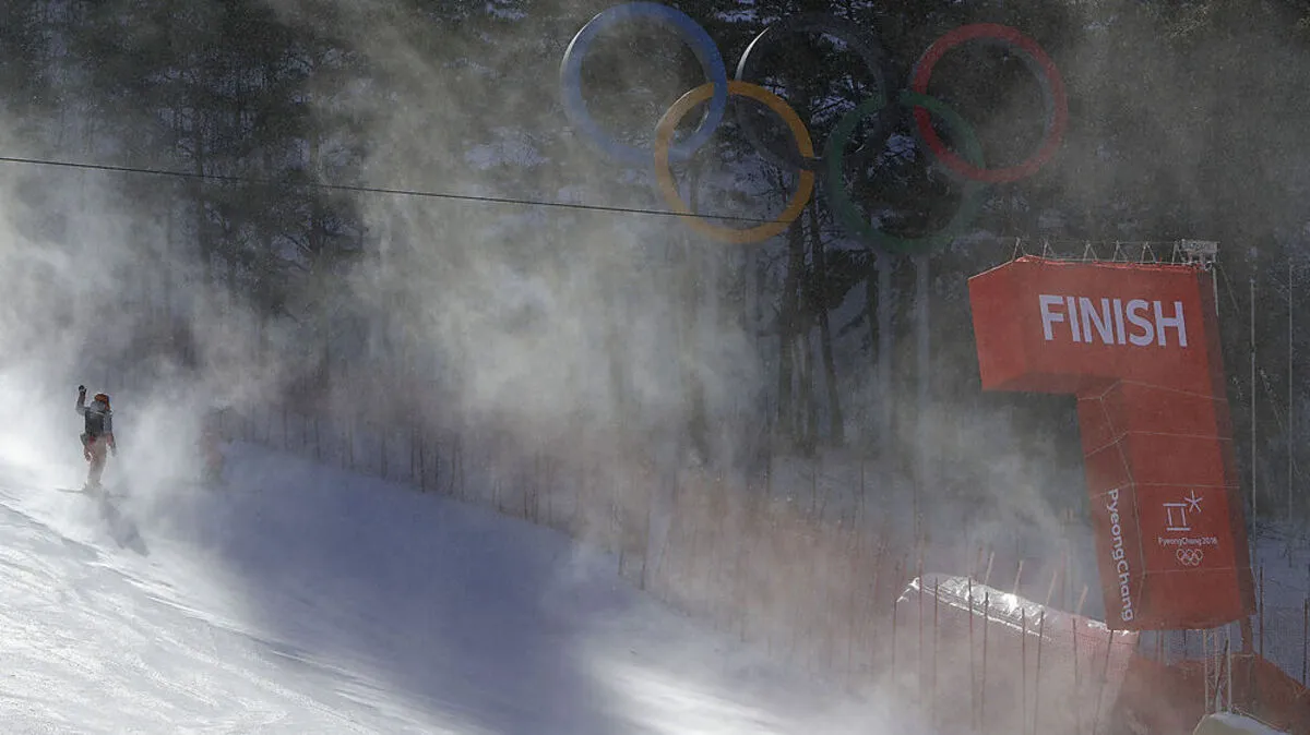 Eine Schrecksekunde im Ziel der alpinen Riesentorlauf-Strecke: Wegen des starken Windes stürzte eine TV-Kamera von einem knapp zehn Meter hohen Podest ins Ziel. Verletzt wurde niemand.