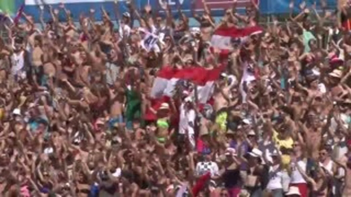 Die zwei Stadionsprecher geben bei der Beachvolleyball-Europameisterschaft in Klagenfurt am Center Court den Ton an. Die Musik ist dabei der wesentliche Faktor. Kleine.tv sprach mit Tom Bläumauer über die Ideen für Songs und Moves, die die Beach-Fans dann am Center Court umsetzen.