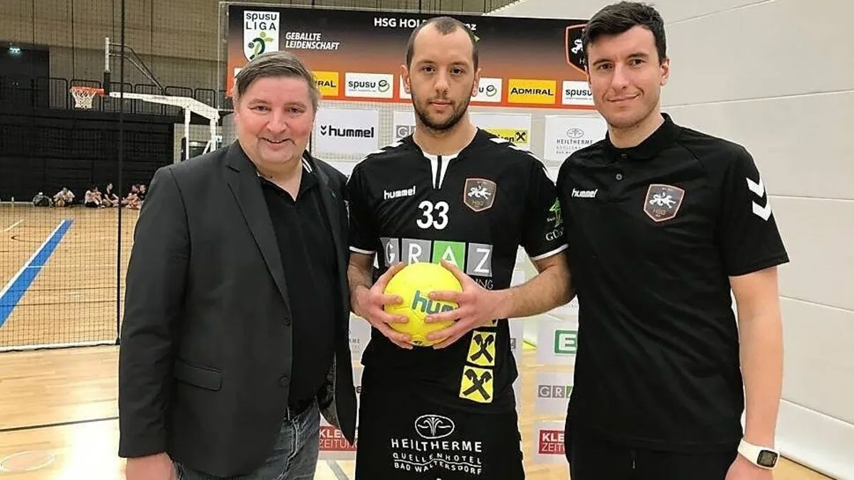 Manager Michael Schweighofer, Neuzugang Ivan Koncul und Trainer Damir Djukic