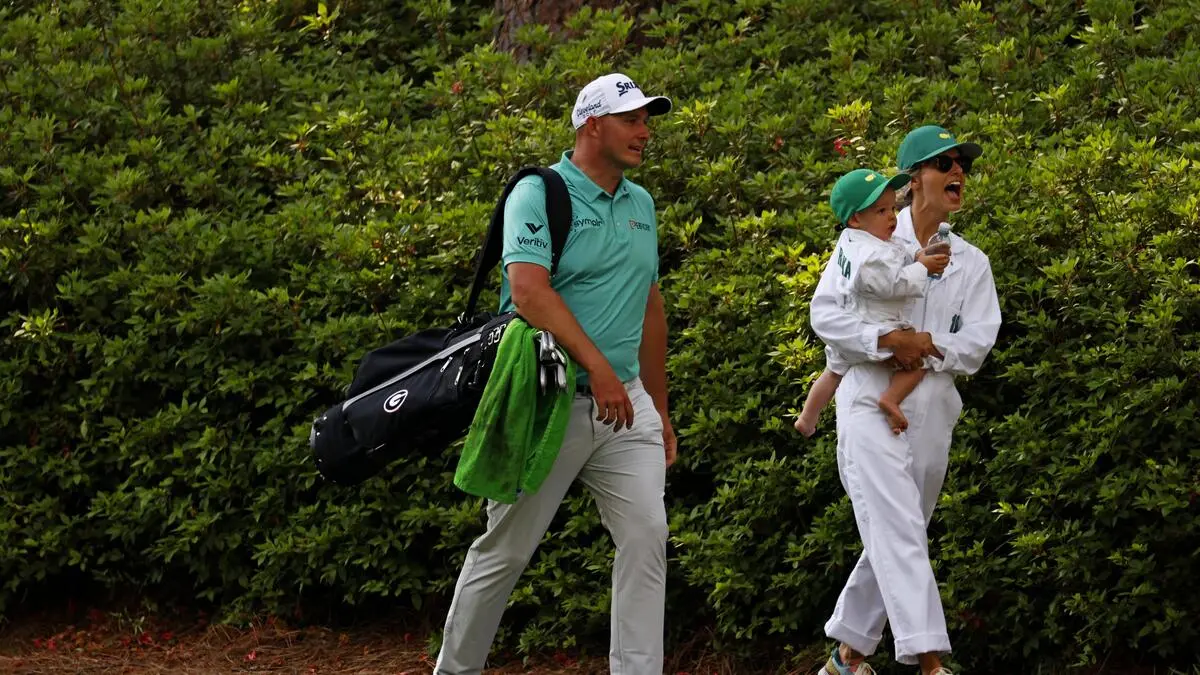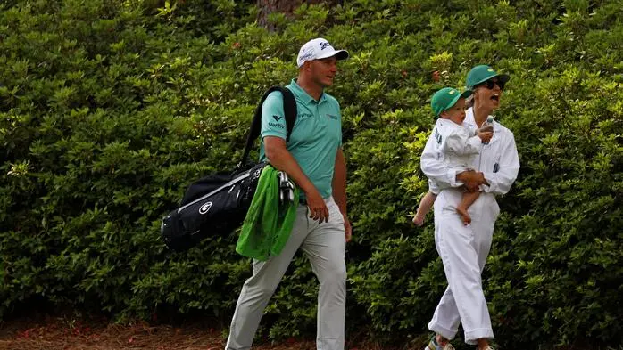 Sepp Straka im vergangenen Jahr mit seiner Frau Paige und dem gemeinsamen Sohn Leo in Augusta