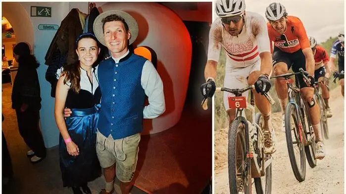 Lukas Pöstlberger startet in Kärnten, links mit Freundin Anna, E-Mountainbike-Weltmeisterin