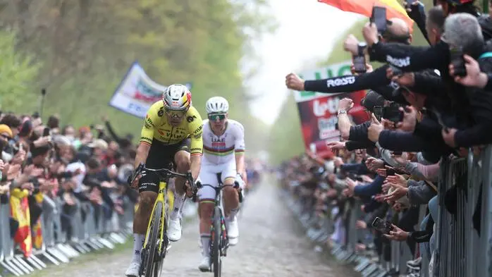 Wout van Aert sprintete bei der 123. Auflage von Paris – Roubaix Weltmeister Tadej Pogačar auf der Bahn nieder und gewann zum ersten Mal dieses Rennen.