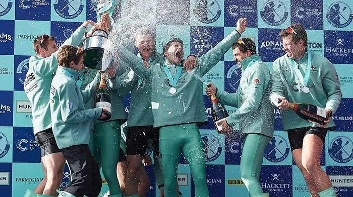 Der Oberösterreicher Clemens Auersperg (24) jubelte mit seinen Universitäts-Kollegen bei der 162. Auflage des Duells auf der Londoner Themse über den 82. Sieg für Cambridge.