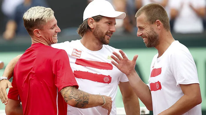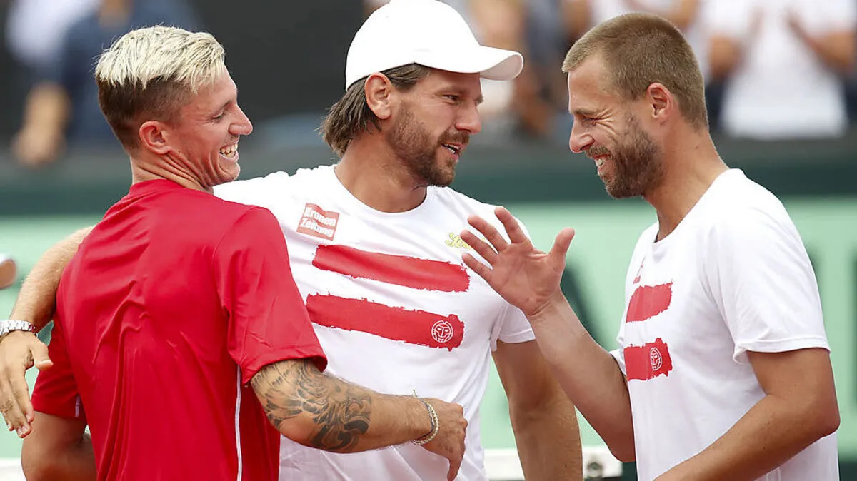 Getragen von einem lautstarken Anhang jubeln Dominic Thiem und Dennis Novak in Graz am ersten Davis-Cup-Tag über Siege.
