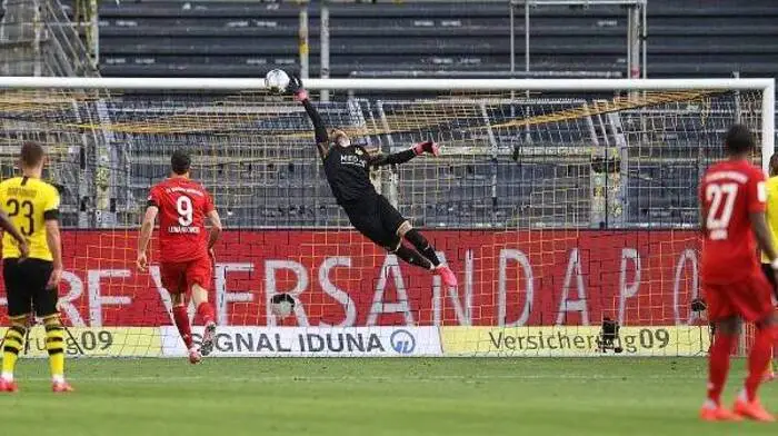 Der FC Bayern hat einen Riesenschritt zur 30. Meisterschaft gemacht. Die Münchner gewannen das Spitzenspiel vor leeren Rängen bei Borussia Dortmund mit 1:0 (1:0) und bauten ihren Vorsprung auf den Verfolger nach dem 28. Spieltag auf sieben Punkte aus.