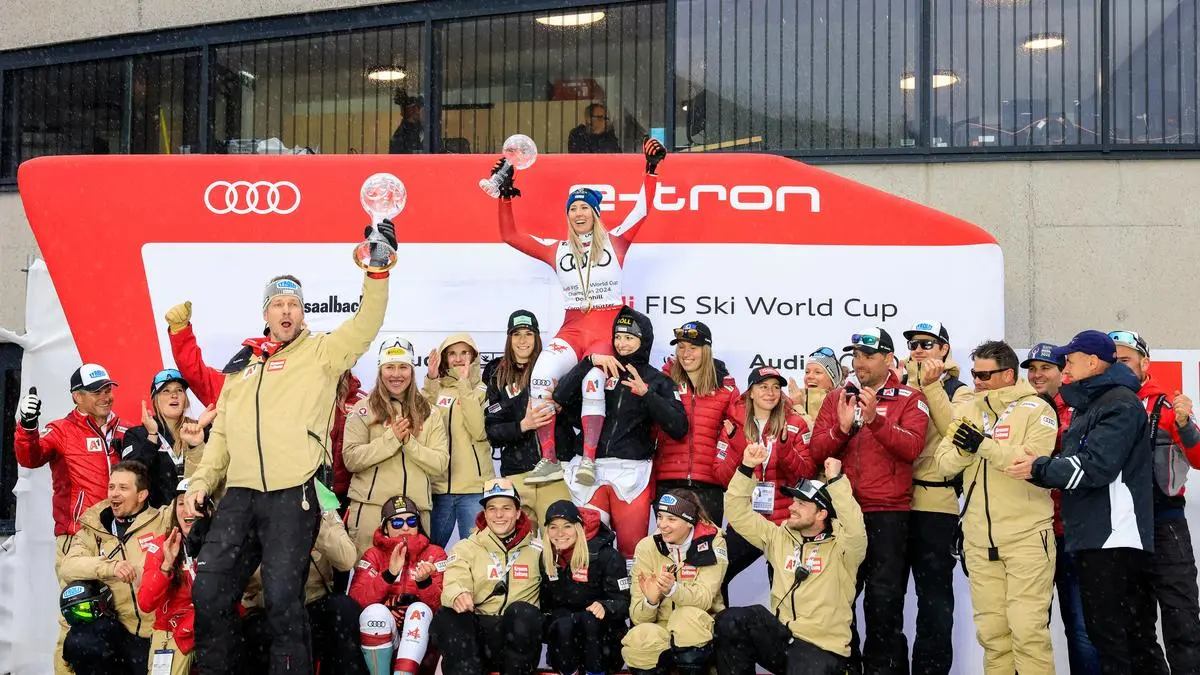 Tränen, Jubel, Umarmungen – im Zielgelände von Saalbach-Hinterglemm ging es nach dem Abfahrtsfinale turbulent her. Conny Hütter schnappte sich im letzten Rennen der Saison sensationell ihre erste Kristallkugel und den Tagessieg. „Ich glaube heute gibt die Conny beim Feiern den Ton an“, freute sich Teamkollegin Mirjam Puchner. „Ich freue mich richtig für sie, es war so überraschend. Es ist mega-cool, sie hat immer gezeigt, wie stark man zurückkommen kann.“