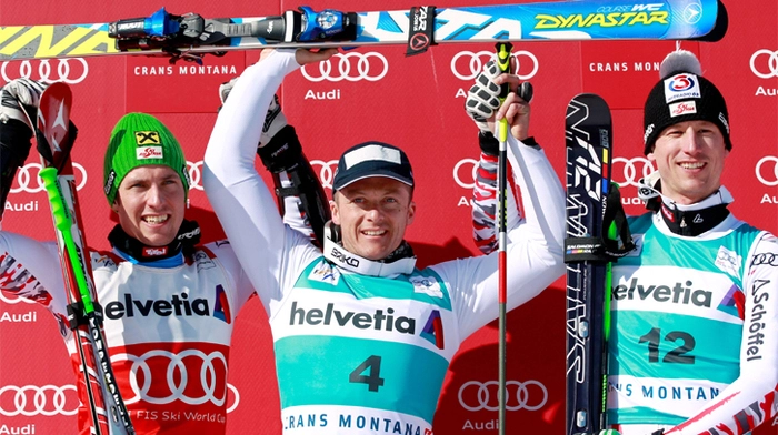 Massimiliano Blardone (ITA) triumphiert beim RTL in Crans Montana vor den beiden Österreichern Marcel Hirscher und Hannes Reichelt. Marcel Mathis wird toller Siebenter.