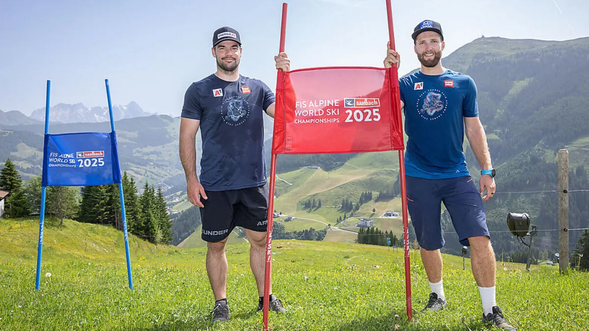 Skifahren im Sommer? Nein, so weit ist es in Saalbach-Hinterglemm noch nicht. Aber die Skistars kamen trotzdem und nahmen den WM-Ort genau unter die Lupe. Ebenso wie die WM-Piste zu Fuß – von unten nach oben.