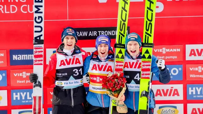 Tschofenig verpasste seinen ersten Einzel-Weltcupsieg nur hauchdünn. „Da muss ich noch darauf warten. Aber es ist extrem befriedigend, nach einer durchwachsenen Saison wieder da zu stehen“, sagte der 21-Jährige. Hörl sprach von einer „brutalen Teamleistung“, er könne es selbst nicht glauben. „Cool, dass es so aufgegangen ist. Das ein oder andere Bier wird es schon geben, aber es ist noch eine Station (in der Raw Air, Anm.) und da müssen wir auch performen.“