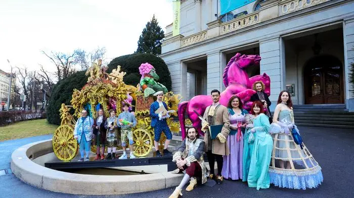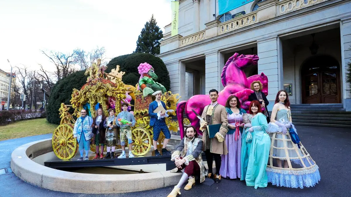 Die Montage sorgte schon am Montag für große Augen: Was macht eine Kutsche, samt Frosch und Pegasus-Gespann im Brunnen vor der Grazer Oper? Nun, es sind außergewöhnliche Vorzeichen auf die Opernredoute am Samstag (27. Jänner). Dort wird ja getreu dem Motto „Barock the Opera“ lustvoll mit optischem Prunk dieser Epoche gespielt – Ausstatterin Mignon Ritter kann aus dem Vollen schöpfen.