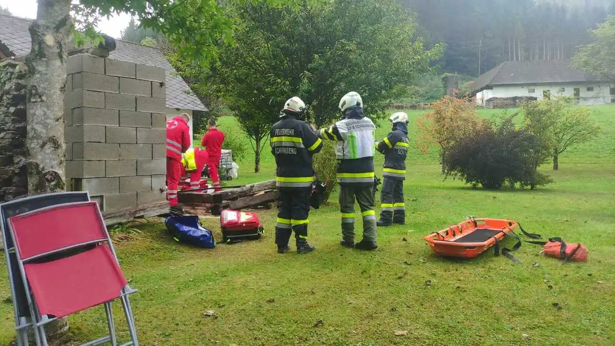Eine Frau wurde von der Feuerwehr Bad Schwanberg mithilfe eines Notarztes und dem Roten Kreuz aus den Trümmern einer eingestürzten Hütte befreit.