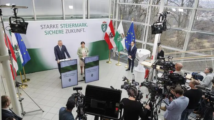 Großes Medieninteresse herrscht an der ersten blau-schwarzen Landesregierung in der Steiermark nach ihrer Arbeitsklausur