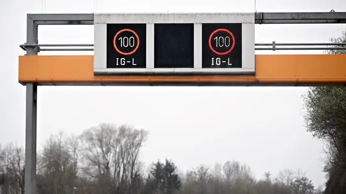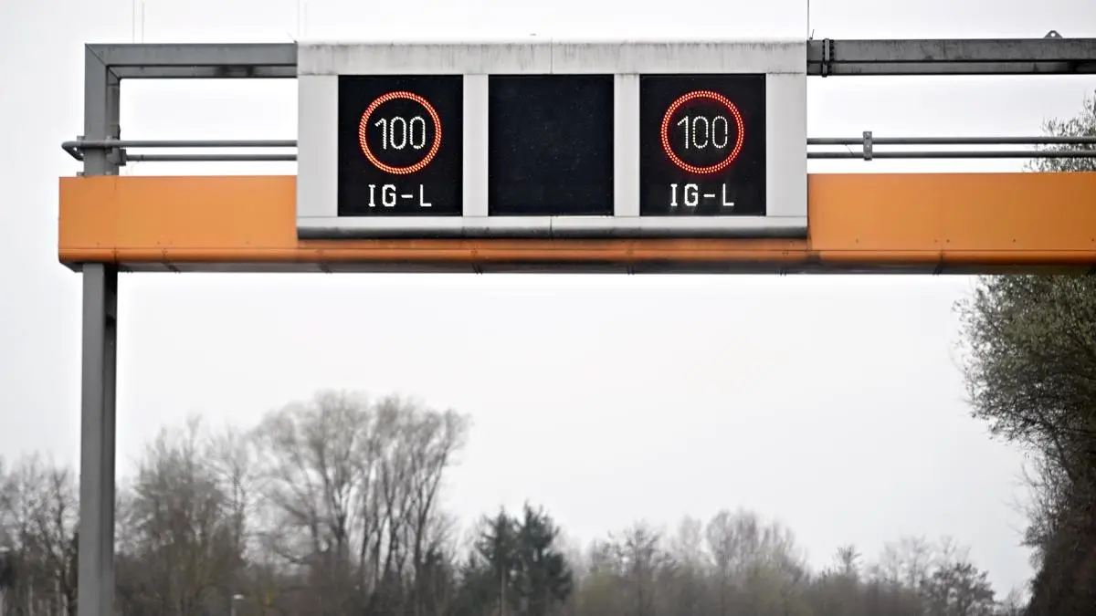 Das Bild zeigt eine Autobahn mit einer elektronischen Verkehrszeichenbrücke. Auf den digitalen Anzeigetafeln ist eine Geschwindigkeitsbegrenzung von 100 km/h angezeigt, jeweils mit dem Zusatz „IG-L“ unter dem Tempolimit. | Bis Ende April soll es mit der flexiblen 100er-Beschränkung in der Steiermark vorbei sein