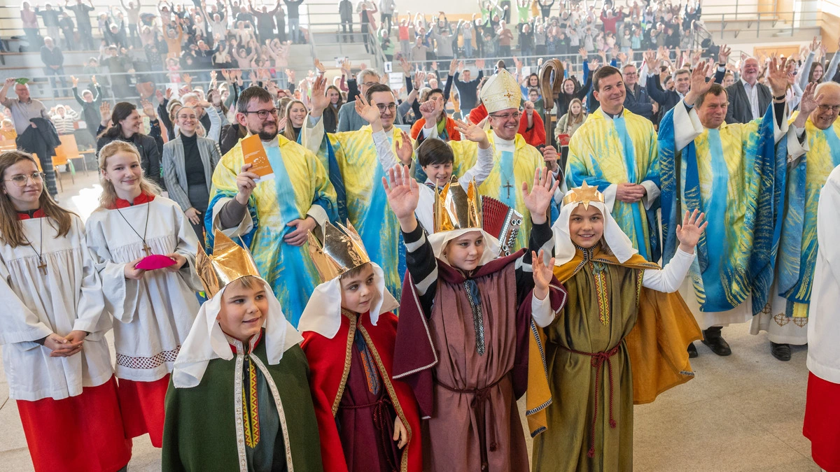 Dick eingepackt huschen Kinder und Erwachsene in die Sporthalle Fehring, in den vergangenen Tagen ist der Winter auch in der Südoststeiermark seinem Namen gerecht geworden. In der Halle ist nichts mehr davon zu spüren: Gut 500 Mädchen und Buben sind mit ihren Begleitern zum Sternsingertreffen gekommen. „Ihr habt die Frohbotschaft verkündet, an den unterschiedlichsten Plätzen: in Häusern, in Wohnungen, in Geschäften oder in Arztpraxen“, freut sich Weihbischof Johannes Freitag.