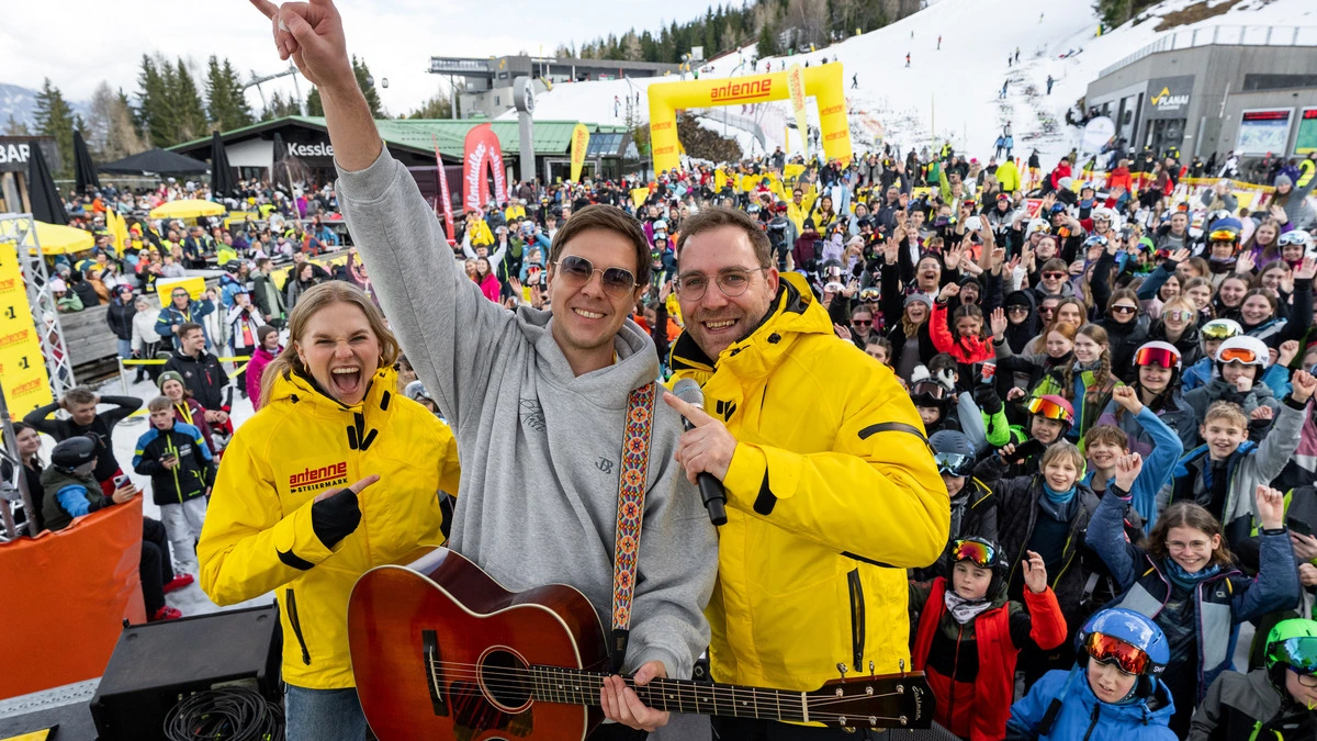 Dazu gibt es Radio zum Angreifen, live auf einer 360-Grad-Bühne im Skigebiet. Die beiden Antenne-Muntermacher Markus Dietrich und Valentina Ober führen durch die Pop-Up-Radioshow, unterstützt von den Live-Reportern Stefan Mosshammer und Fabian Fraissler.