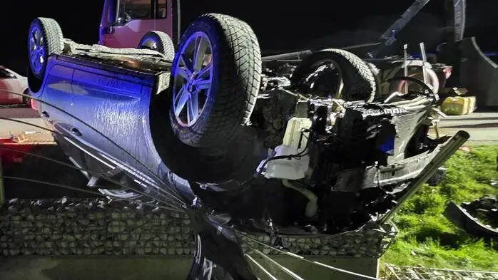 Pkw-Lenker fuhr auf Lkw-Rampe auf und landet auf Privatgrundstück