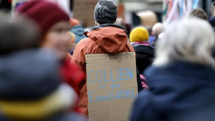 Das Foto zeigt eine Person bei einer Demonstration auf dessen Schild zu lesen ist „Collien ist kein Einzelfall“.