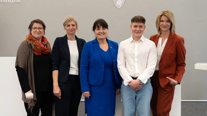 Landeshauptmann-Stv. Manuela Khom (Mitte) präsentierte den Girls‘ Day 2026. An ihrer Seite Michaela Marterer (STVG), Margret Nößler (AMS Steiermark), Valentin Strohmaier (LUV-Kindergarten) und Alexandra Hörmann (AK) (von links).