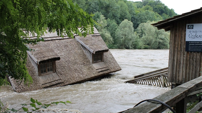 Zum mittlerweile vierten Mal innerhalb von zehn Jahren ist am Sonntag die Murecker Schiffsmühle in den Fluten der Mur versunken. Als die Helfer eintrafen, war die Mühle nicht mehr zu retten. Millionenhoher Schaden wird befürchtet.