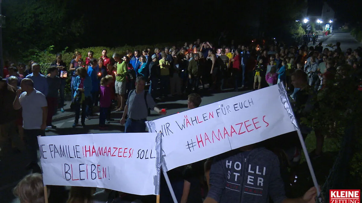 Etwa 300 Menschen haben am Donnerstag am Kumberger Marktplatz demonstriert, dass die Flüchtlingsfamilie Hamazees bleiben darf. Am Vormittag war mit einem Polizeihubschrauber nach den Kindern gesucht worden. Vater Delan kann zwar bestätigen, dass es den geflüchteten Kindern gut geht, er kennt aber nicht ihren Aufenthaltsort.