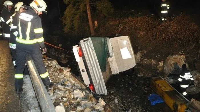Großes Glück für den Lenker eines Lieferwagens: Er konnte sich nach dem Absturz in einen Bach selbst aus dem Fahrzeug befreien. Feuerwehr musste den Wagen bergen.