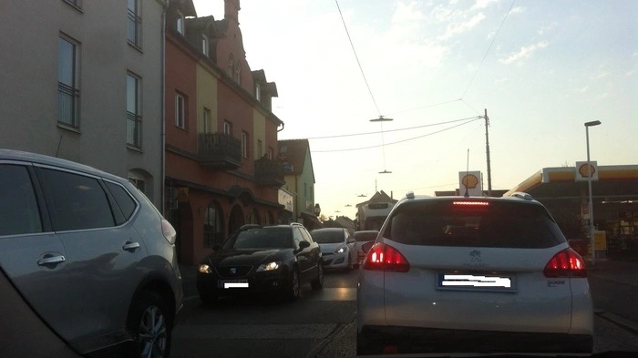 Stau heute Früh in der Grazer St. Pete Hauptstraße