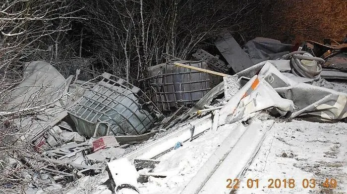 Die zerstörten Kunststofftanks neben der Fahrbahn