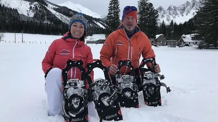 Margit Berger und Matthias Pripfl schnallen ihren Kunden Schneeschuhe an, entführen sie auf die Mur, waschen mit ihnen Gold oder bauen Iglus