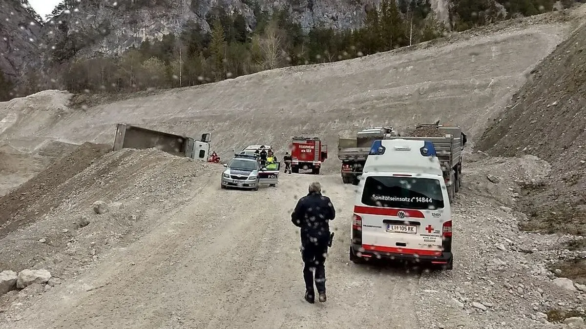 Tödlicher Arbeitsunfall in Gröbming-Winkl: Beim Abladen von Schotter kippte ein Lkw seitlich um. Der 54-jährige Lenker starb in der Fahrerkabine.