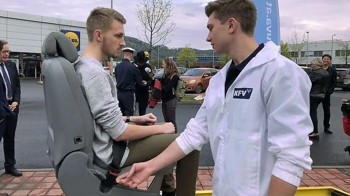 63 der Verkehrstoten in den letzten fünf Jahren in der Steiermark waren nicht angegurtet. Im Video: Der Verkehrslandesrat testet den Gurtenschlitten.