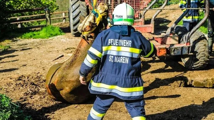 Die Feuerwehr St. Marein bei Knittelfeld konnte das Tier unversehrt aus einer drei Meter tiefen Grube befreien.