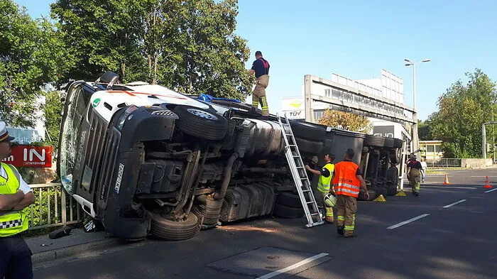 Weil in einer Kurve das Ladegut zu rutschen begann, kippte in Graz ein Sattelschlepper um und landete auf dem Geländer des Mühlgangs. Die Straße musste gesperrt werden, die Bergung verlief mühsam.