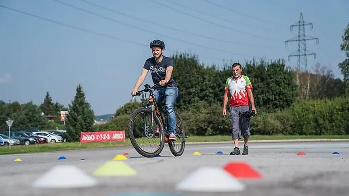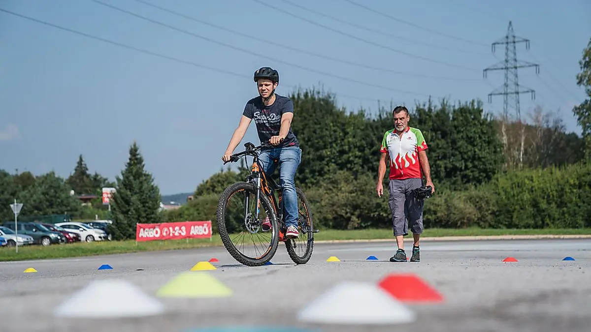 Der Tacho steht auf Turbo, das Hindernis rückt näher, die nächste Kurve wird eng. Es geht sich nicht aus: Das Elektro-Rad überfährt das gelbe Hütchen. „Ähnlich eng kann es auch am Murradweg zugehen. Da musst du gerade mit dem E-Bike sehr vorausschauend fahren“, sagt Gerd Klemen, Radexperte der steirischen Naturfreunde und schickt hinterher: „Viele machen das leider nicht.“