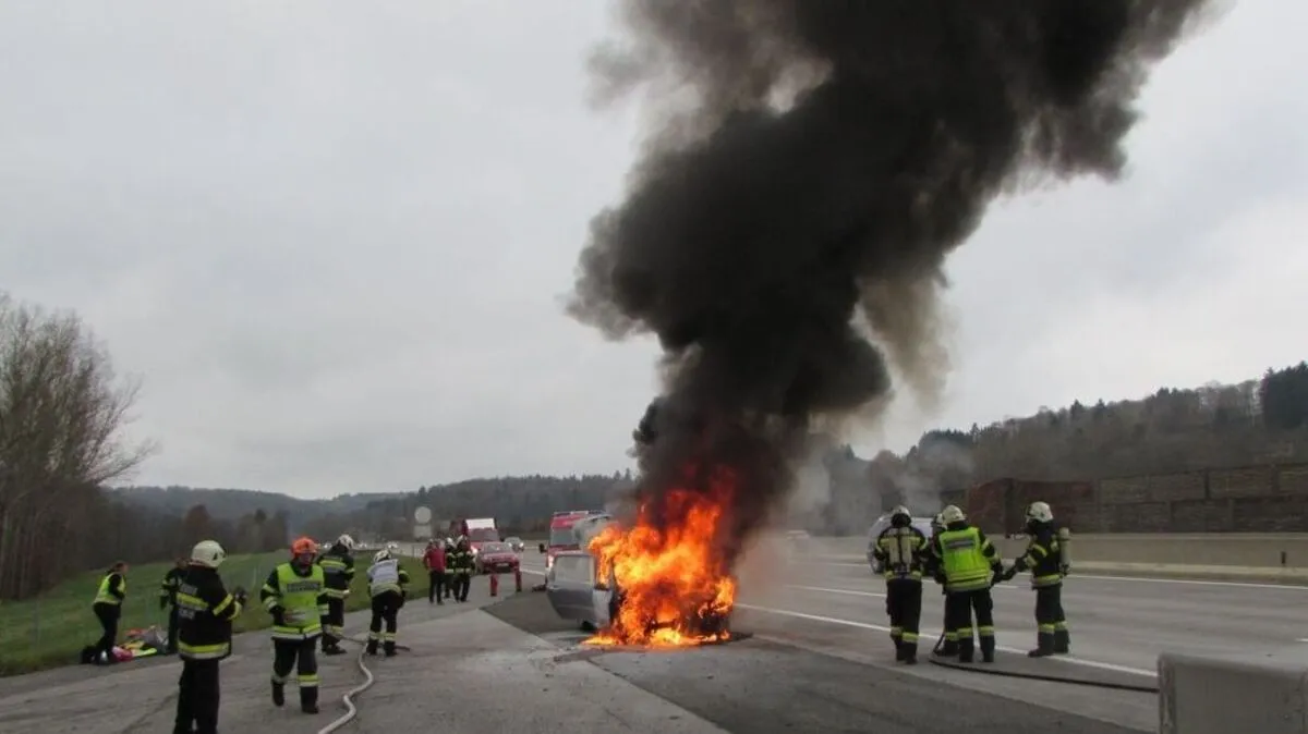 Starker Rauch: Auto brannte auf Autobahn lichterloh