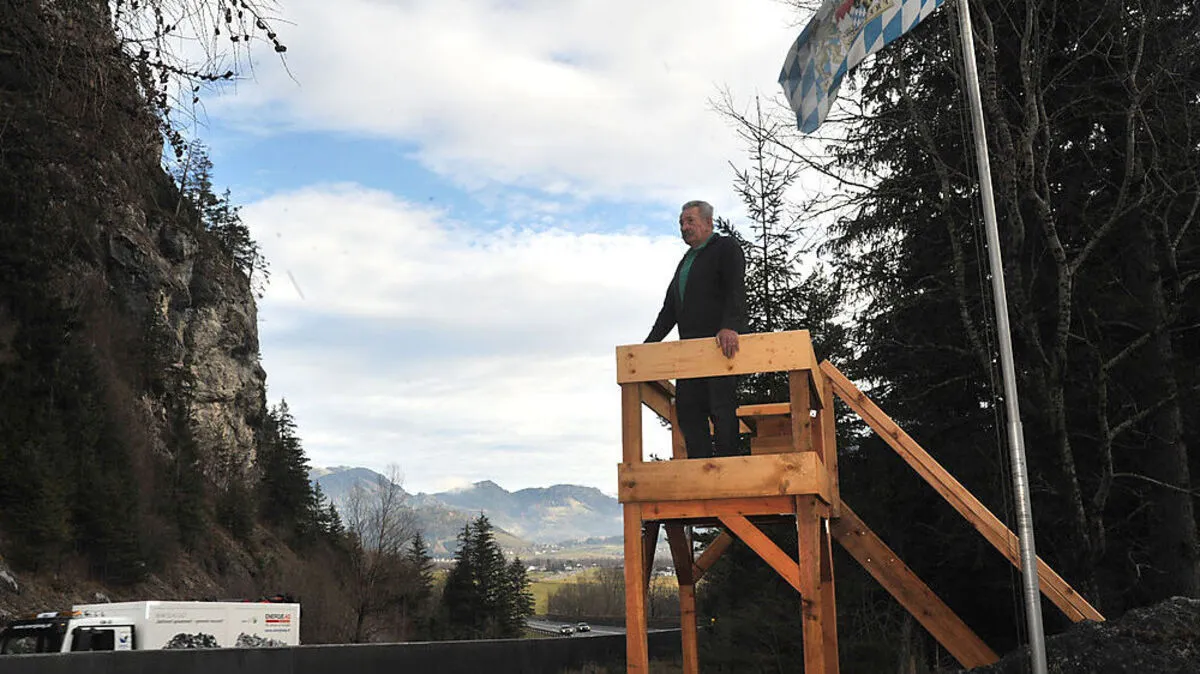 Alle im Ort wollten die Lärmschutzwand, nur einer nicht. Der Bayer Horst Seubert baute sich in Untergrimming einen eigenen Hochsitz: zur Lkw-Beobachtung.