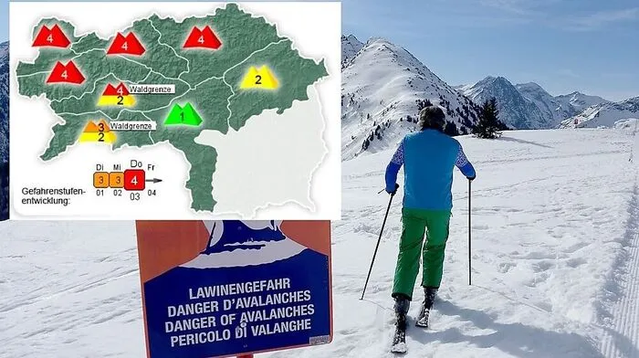 Erstmals in diesem Winter herrscht Lawinenwarnstufe vier. Dazu weht weiter ein eisiger Wind, die Sicht auf den Bergen ist schlecht. Von Skitouren wird dringend abgeraten.