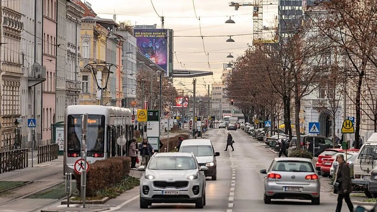 Schwerer Unfall in Graz-Jakomini. Frau wollte auf Höhe Finanzamt vor der Straßenbahngarnitur den Gleiskörper überqueren und wurde erfasst.