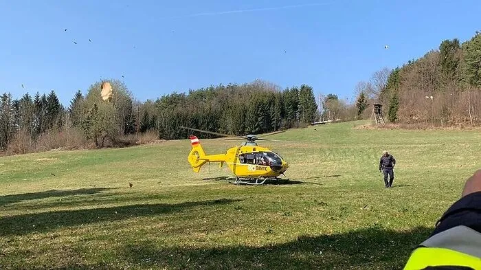 Forstunfall in Rohrbach an der Lafnitz. Der Verletzte wurde mit dem C16 ins Krankenhaus geflogen.