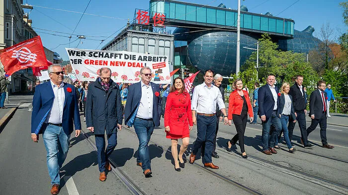 SPÖ, KPÖ & Co. am Tag der Arbeit in der Steiermark: Zahlreiche Genossen besuchten die SP-Kundgebung mit Schickhofer, Vollath und Ehmann. Verbale Ohrfeigen kassierten Kurz und Strache, Koalitionspartner Schützenhöfer keine.
