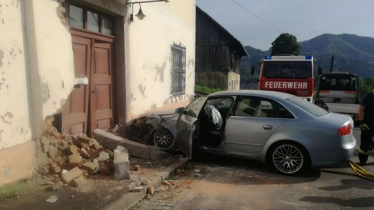 Lenkerin schlief auf B 69 in Leutschach ein und krachte mit ihrem Auto gegen ein leerstehendes Haus. Sie wurde mit Verletzungen ins Spital gebracht.