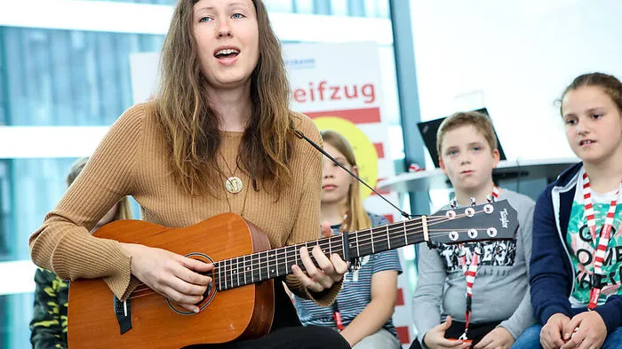 Grazerin "Vida Noa" spielte in der Redaktion spontan für eine Schülergruppe