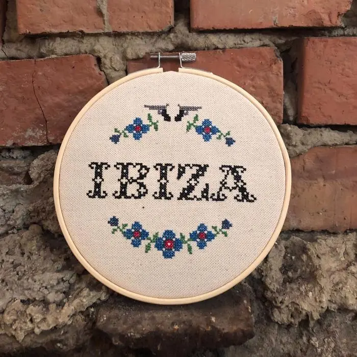 Ibiza ist auch für Landkinder ein Thema, ein steirisches Unternehmen, das sich der Liebe zu alten Designs und dem östereichischen Humor verschrieben hat. Isabella Fraiss und Gernot Hörtner aus Gratwein interpretieren altes Traditionshandwerk - den Kreuzstich - mit frechen, provokanten Sprüchen neu. Da durfte auch ein Kreuzstich-Motiv mit dem Wort "Ibiza" nicht fehlen.