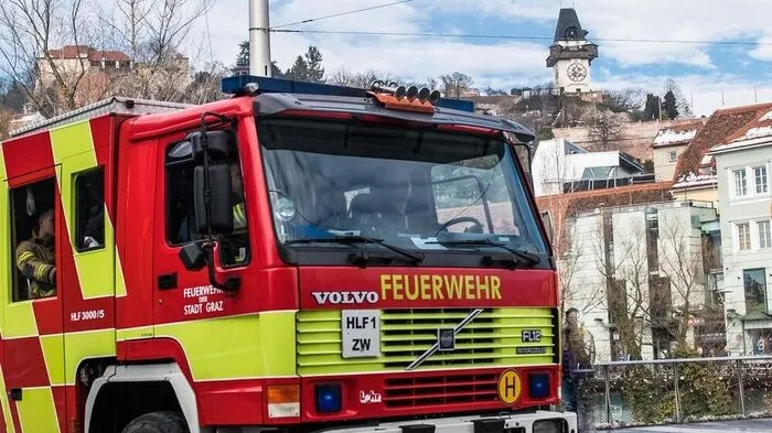 Die Grazer Berufsfeuerwehr stiegen per Drehleiter in den 14 Stock auf