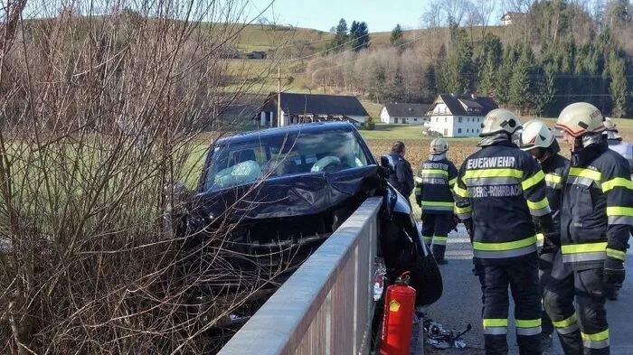 In Steinberg kam Sonntagvormittag ein Pkw von der Straße ab und krachte in ein Brückengeländer. Die Insassen wurden nicht verletzt, aber am Fahrzeug entstand hoher Sachschaden.